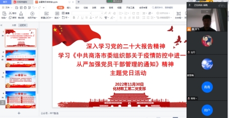 11月30日下午2:00,化材学院教工第二党支部组织支部全体党员通过线上腾讯会议方式开展了主题党日活动。