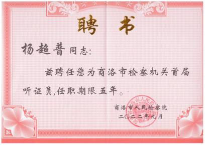 受聘担任商洛市检察机关听证员后,杨超普副教授努力克服教学工作、科研任务和听证会时间冲突的问题,积极参加每一次听证会。在听证会上,杨超普副教授充分发挥自己在专业技术、科学研究方面的优势,从保护生态环境、优化营商环境、社会治理创新等方面提出有针对性的、切实可行的意见建议,助推商洛高质量发展再上新台阶。如在4月7日参加商州区检察院一起非法捕捞水产品案件听证会过程中,杨超普副教授建议向当事人发环境保护类“社会服务令”,督促当事人积极修复破坏的生态环境,并警示其他民众爱护环境,不得实施破坏生态环境的行为。该意见得到采纳,收到了良好的社会效果。