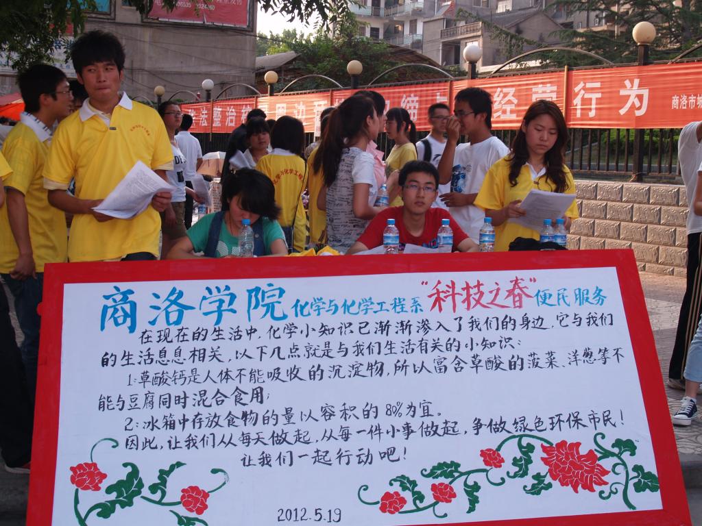 为了使化学知识深入到广大人民群众之中,我系于5月19日组织同学们开展了“科技之春”便民服务活动。