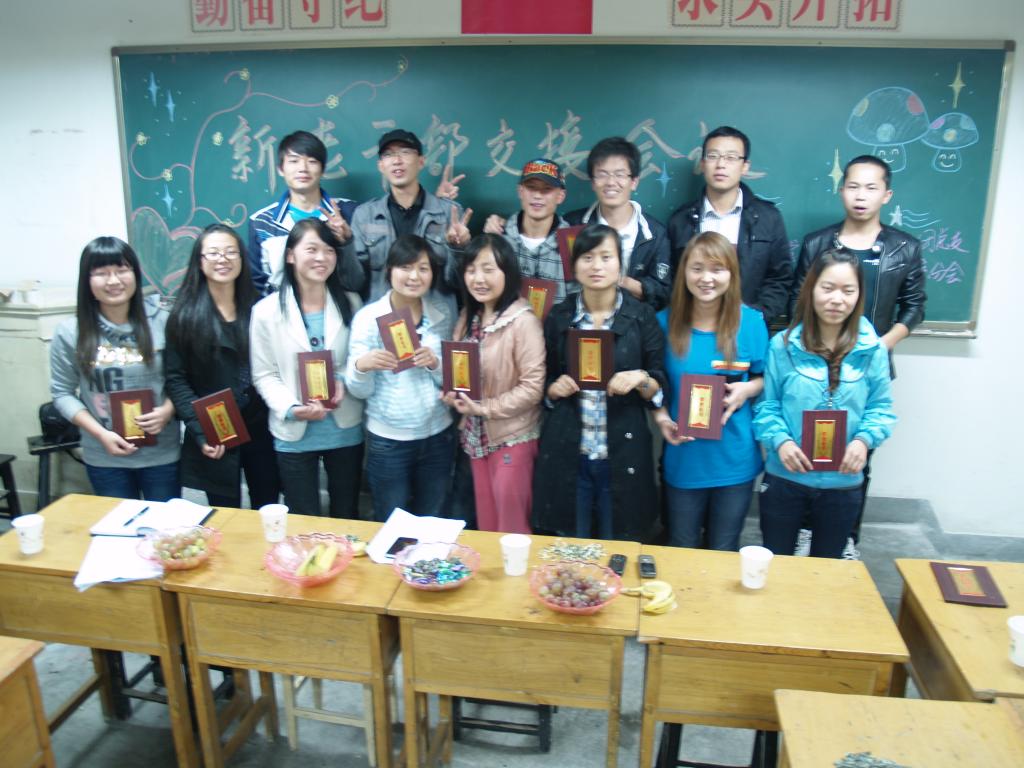 会上,武老师首先发言:在上一学年里,对10级的学生干部们认真负责,尽心尽力协助老师完成各项工作及活动的积极态度表示高度赞扬,并对上一届学生会成员所付出的努力和取得的成绩给予了充分的肯定和鼓励。同时也就11级的学生干部今后如何更好地开展工作提出自己的建议。并希望他们能在日后的学习和工作中再接再厉,取得更好的成绩。在阵阵热烈的掌声中,武老师亲自为10级的学生干部们颁发了聘书。