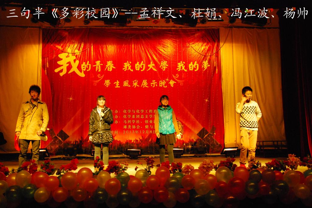 为了展现我系学生的精神风貌,传承“团结、进取、健康、和谐”的精神火炬;丰富校园文化生活,营造“积极、向上、活泼、激情”的校园文化氛围;体现我学生自我教育、自我管理、自我服务的方针。12月8日晚,我系举办“我的青春、我的大学、我的梦”学生风采晚会。此次晚会由我系主办,马列学社、创业就业联社、球类协会、健与美协会协办。参加此次活动的嘉宾有生物医药工程系党总支书记敬小民、团委书记彭晓邦,城乡发展与管理工程系团总支书记苏铁柱。我系主任周春生、党总支书记刘全民,副主任王书民以及我系的全体教职工观看了演出。