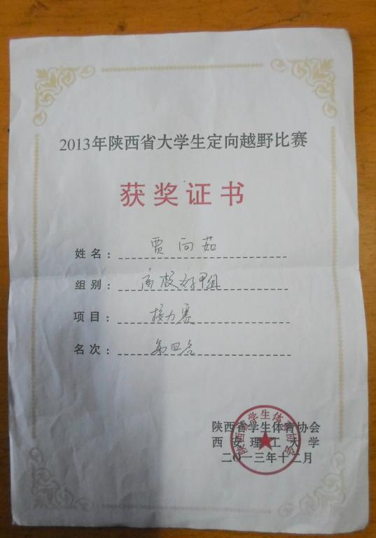 由陕西省教育厅主办的2013陕西省大学生定向越野比赛于2013年12月6日至7日在西安理工大学如期举行,本次比赛吸引了来自西安交通大学、西安文理学院、商洛学院等19支代表队200多名运动员及公开组100多名运动员参加了百米定向比赛,短距离赛、接力赛的角逐。