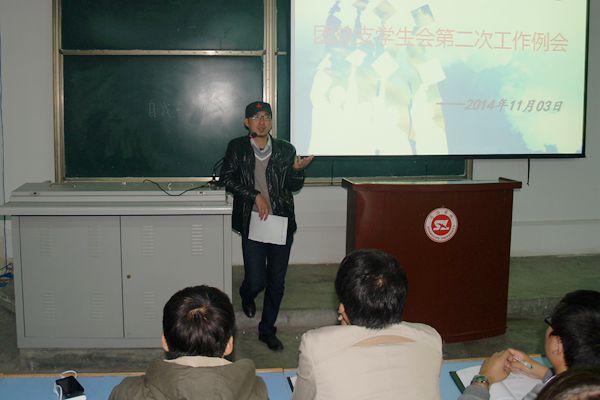 首先,团总支书记武永耿老师依据实际情况为学生会日常工作的开展做出重要讲话。他指出:大家要抓住学生会这个良好平台,完成个人向社会化的角色改变;要学会给自己一个良好定位,在协调好工作与学习的同时,要懂得从小事做起,做到全力以赴,并尤其强调了“先做人,后做事”的道理!随后,学生会主席董阳阳及各部门负责人分别总结了前期工作和存在问题,并对后期工作的开展做了简单部署和展望。最后,大会在学生代表卓亚妮副主席情真意切的发言下,圆满结束。
