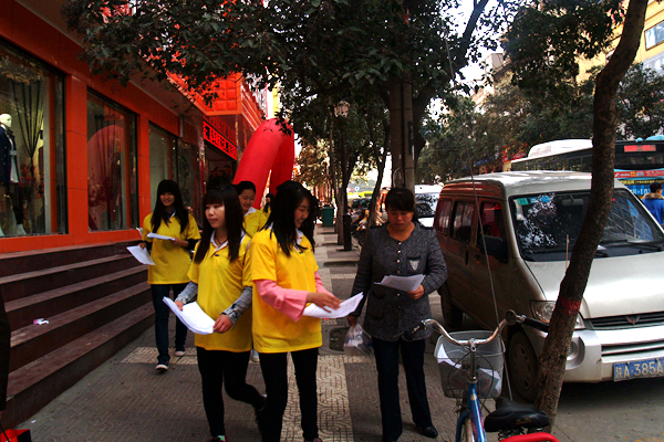 早上九点,学生会各部部长及部员在五号教学楼门前集合完毕,在团总支副书记焦亮、学生会主席董阳的带领下走出校园,开始了低碳环保的公益宣传活动。活动中,志愿者们向市民发放“低碳生活”的宣传材料,并向大家宣传低碳的生活方式和消费方式,还为居民讲解了节约用水、用电、用纸的小窍门和垃圾减量、垃圾分类的知识,经过两个多小时,活动圆满结束。