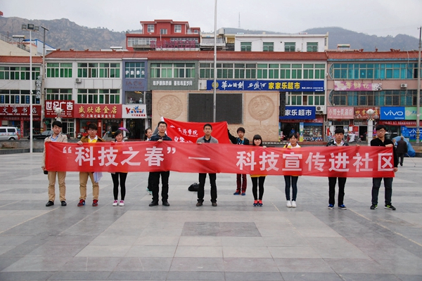 2015年4月3日,我院团总支学生会与共青团丹凤县团委在丹凤县中心广场与共同合作开展了以“科技之春——低碳环保进社区”为主题的科普宣传活动。