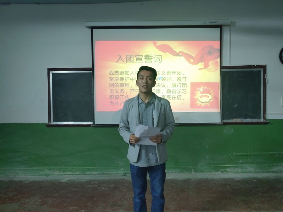 接着由主持人宣布周旭阳,万甜甜,魏琪等十三个人入团,并带领他们进行入团宣誓,一起学习入团规章。新团员谢宇航和老团员顾杭杭就自己的入团感想以及未来努力方向分别发表讲话。