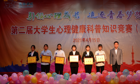 4月15日下午,我校第二届大学生心理健康科普知识竞赛在大学生活动中心举办决赛。校党委副书记彭虎军莅临现场并为获奖人员颁奖。学生处负责人,各二级学院党总支书记、学工办主任、全体辅导员以及学生代表共400余人观看了比赛。