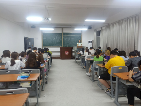 2018级辅导员王嘉琳在全年级组织开展了“诚信是为人之本,共创校园诚信氛围”的主题班会。通过学习学习《学生手册》上关于诚信考试的相关内容、反面警示案例等,使全体学生充分认识到诚信做人的重要意义,也明确了树道德之新风,立诚信之根本是当代学生义不容辞的责任。