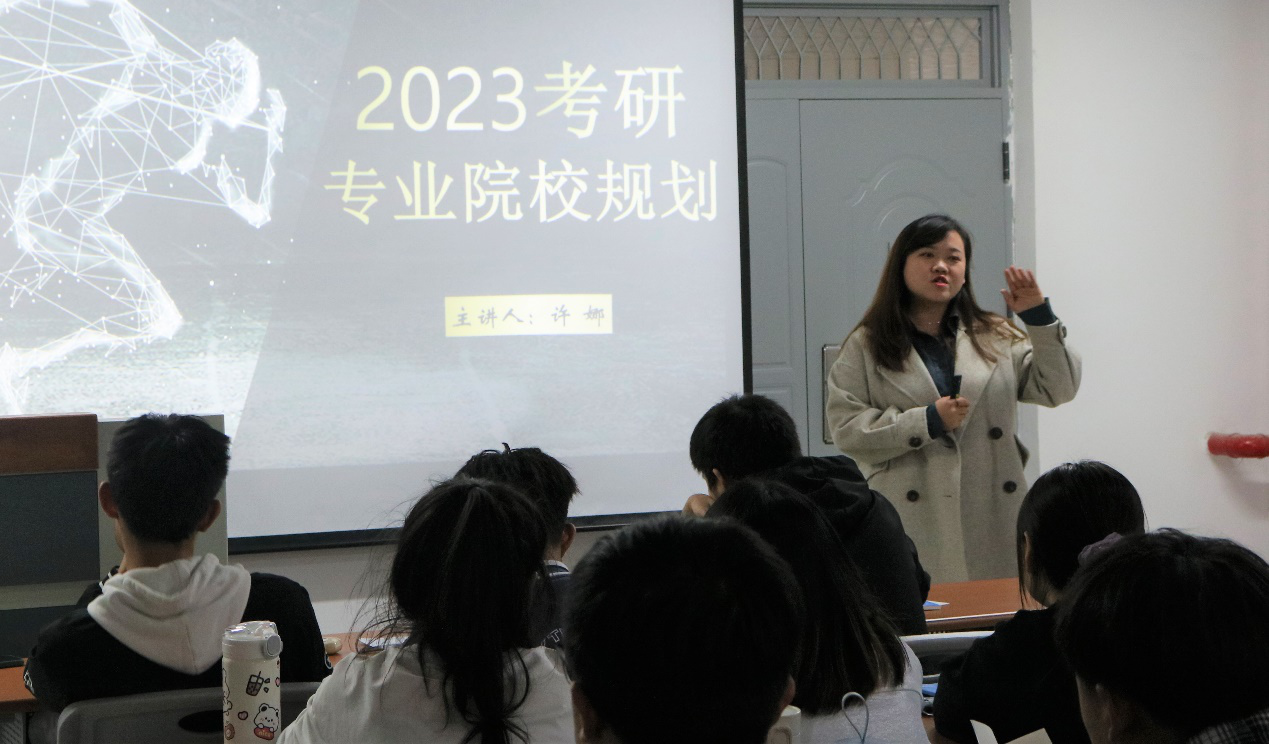 会议伊始,许娜老师围绕考研形势、考研常识、院校分析、复习攻略四个方面展开宣讲,为同学们做了详尽的分析和阐述。在考研形势方面,她结合研究生扩招、疫情的影响和当前工作应聘要求条件等现实背景分析了考研形势,并指出近年来考研率呈现上升趋势,但考研整体竞争程度激烈;同时讲解了考研的流程、时间及考试特点等基本常识,结合自身经历进行分析,提高了同学们对考研的进一步认识。