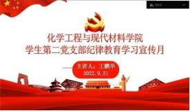 2022年9月21日下午14:30,化学工程与现代材料学院学生第二党支部于钉钉平台开展了纪律教育宣传暨“严守纪律规矩、加强作风建设”专题组织生活会。本次会议由党支部书记王鹏举老师主持,支部全体党员参与了本次会议。