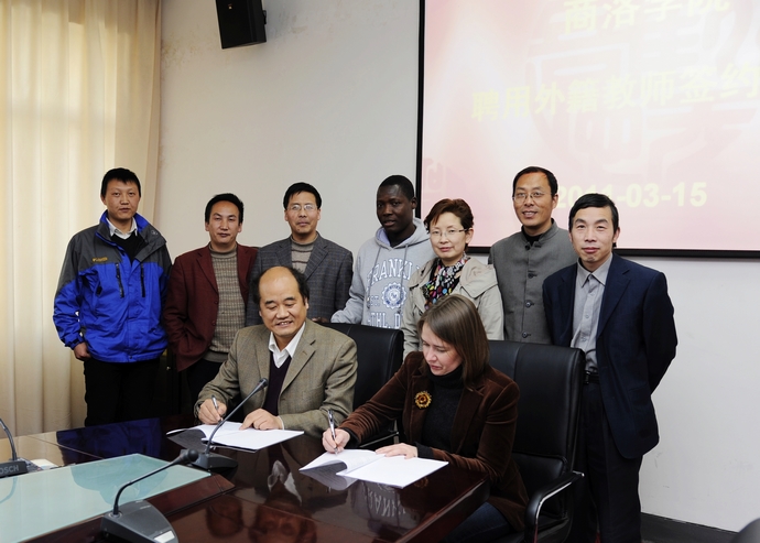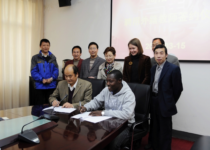 3月15日下午,我院举行聘请外籍教师签约仪式,副院长刘建林代表学院与外籍教师Laima(立陶宛)、Hillary(喀麦隆)签订了聘用合同。学院办公室、教务处、外语系相关负责人参加仪式。