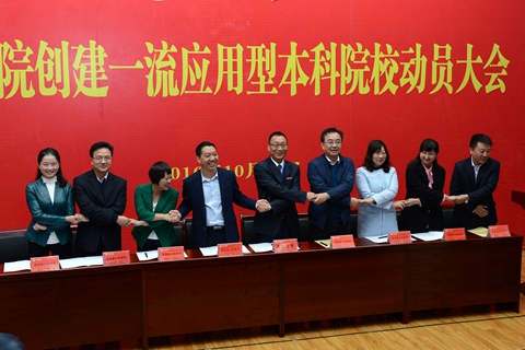 10月23日,在商洛学院创建一流应用型本科院校动员大会上,副校长刘宝盈代表学校与商洛市六县一区政府、商丹园区管委会签署《商洛市校地合作联盟框架协议》,组建商洛市校地合作联盟,为商洛区域经济社会发展提供教育保障、科技支撑和智力支持。