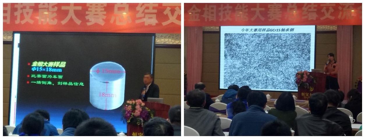 清华大学雷书玲老师作《金相样品制备与显微摄影》专题报告,分享自己制样过程中的一些经验,指出要得到一张好的金相图片需具备如下几个关键步骤:材料成分要准确、掌握好热处理工艺、组织一定要典型、样品的磨制(最后一道砂纸至关重要)、样品的抛光(手法、力度、位置、时间、抛光布选择)、样品的腐蚀(腐蚀剂、腐蚀时间、腐蚀深浅、腐蚀温度、腐蚀速度等)及显微照相。昆明理工大学段云彪以《浅谈实验基本操作技能的培训》为题进行指导交流。他就制样过程中需注意的问题及存在的不规范操作逐一进行讲解。