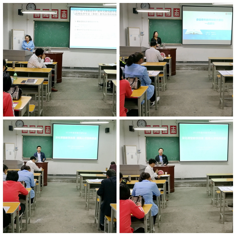 随后,陈凤英、曹宝月、刘彦峰、刘璇分别汇报交流各系“提升课堂质量”讨论成果;张美丽、狄燕清分别进行课堂教学改革项目申报经验交流;曹宝月作陕西高等学校第四届青年教师教学竞赛、陕西高校思政课教师大练兵参赛经验交流;王之宇、陈凤英、南宁、徐珊、龚伟、王建芳等六位教师作教学成果交流;李春、李凯斌分别作“互联网+”大赛参赛经验交流。