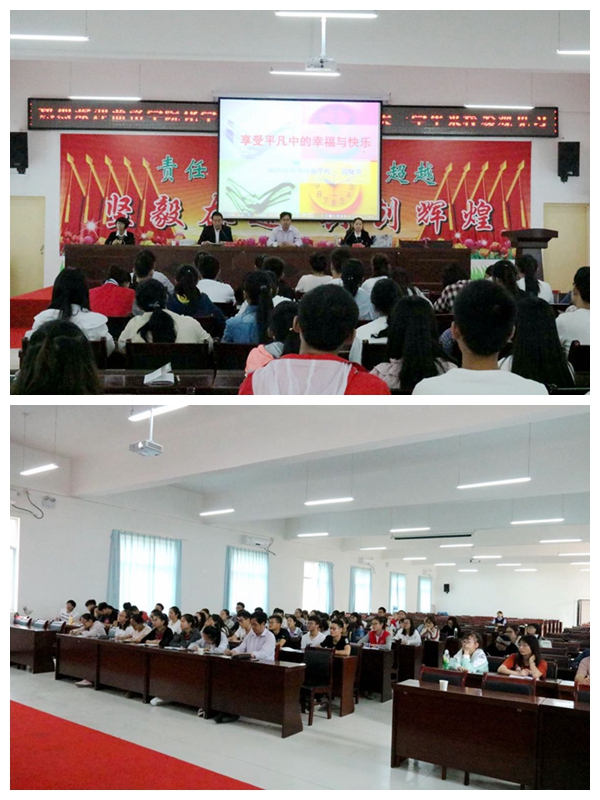 本次实习分别邀请教学名师王求亮、魏功堂老师作了示范教学。魏老师展示了翻转课堂的教学模式,王老师巧妙地将化学实验融入课堂教学,为同学们呈现了丰富多彩的课堂,侧面显示出现代中学教育的课堂革新。全国优秀教师、陕西省特级教师、陕西省有突出贡献专家、陕西省先进工作者、陕西省教学能手、陕西省三八红旗手寇晓英副校长给同学们作了一场题为《享受平凡中的幸福与快乐》的专题报告。寇老师从自己的人生经历、教学组织、学生管理、班级管理、同事相处、师生互动、典型案例等九方面分享了成长成为一名全国优秀教师成功经验。