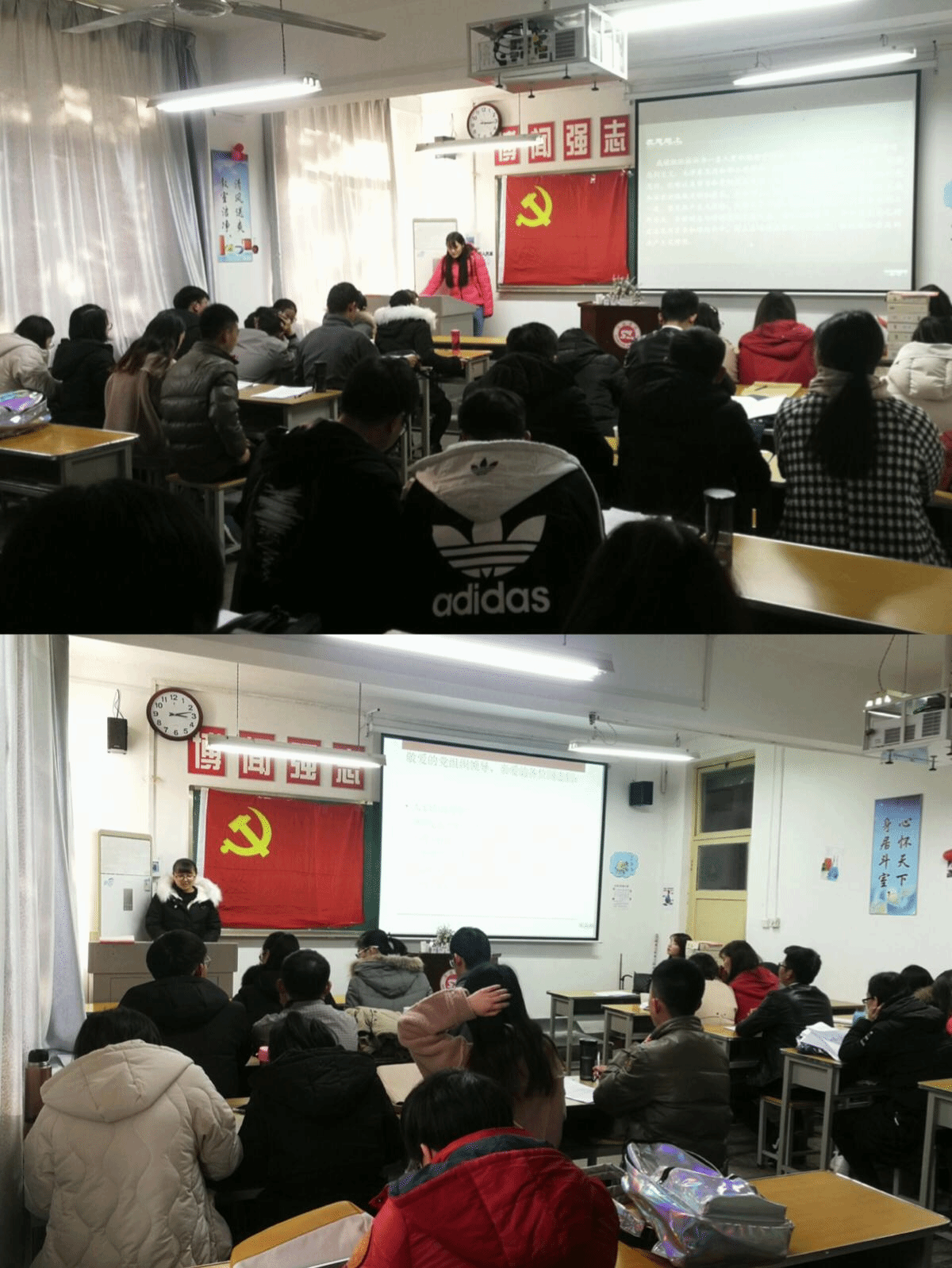 2018年12月18日,我院学生党支部在5号楼307教室召开接收预备党员暨预备党员转正大会。学生第一党支部书记陈玉萍同志、学生第二党支部书记高霞同志、教师代表元飞同志、8名学生正式党员和12名学生预备党员参加会议。大会决定接收高妮等12名同志为预备党员,同意郝东同志按期转为中共正式党员。