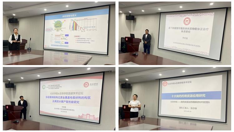 两院科研创新团队骨干分别根据自己的研究领域、技术专长以及代表性研究成果进行了汇报和研讨,我院功能分子与能源材料研究创新团队、MOF基功能材料热化学创新团队与生物学院商药资源及药用新材料开发团队达成了初步合作意向。