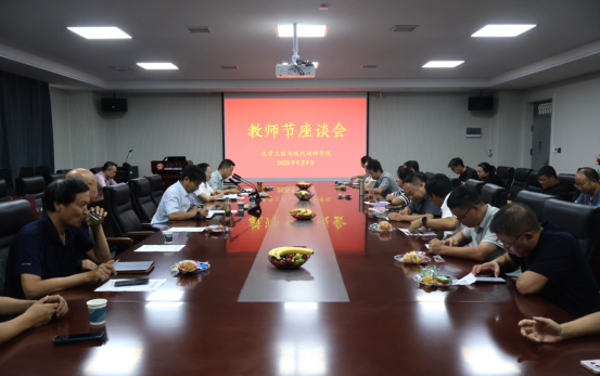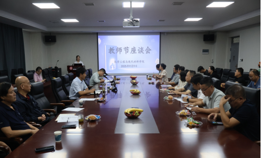 为庆祝第41个教师节,9月9日,化学工程与现代材料学院以“以教育家精神铸魂强师,谱写教育强国建设华章” 为主题召开座谈会,全体教职工参会,学院副院长刘彦峰主持会议。